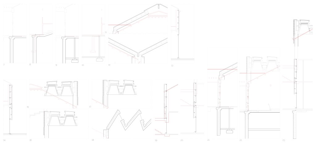 “Draw” three (3) section details showing the connection between the old Agricultural Heritage Museum and the new addition.